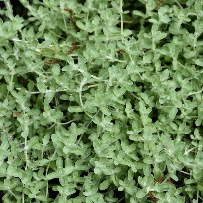 An attractive, creeping groundcover, featuring silvery gray-green leaves with a bluish cast; tiny violet to lavender blooms begin in spring; grows well in thin, well drained soil; tolerates drought and reflected heat well; great for cascading over walls.
