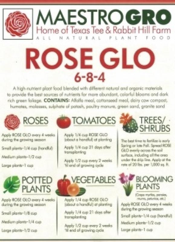 The premier organic rose fertilizer on the market, with the highest nutrient content. Rose Glo contains a wide variety of high nutrient materials – including humates, feather meal, bone meal, worm castings, alfalfa meal, compost - for more colorful blooms, rich green foliage.