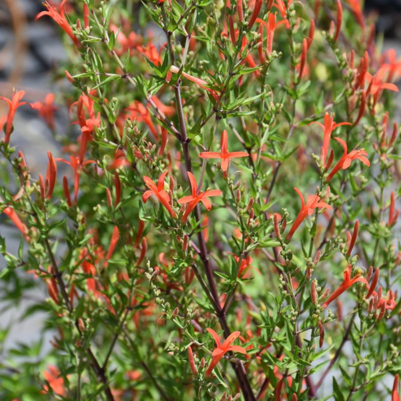 A beautiful native shrub of south central Texas, producing vivid red-orange tubular flowers from late spring to fall; very adaptable and drought tolerant; great for heavy soils or growing in containers; a fine landscape specimen plant.