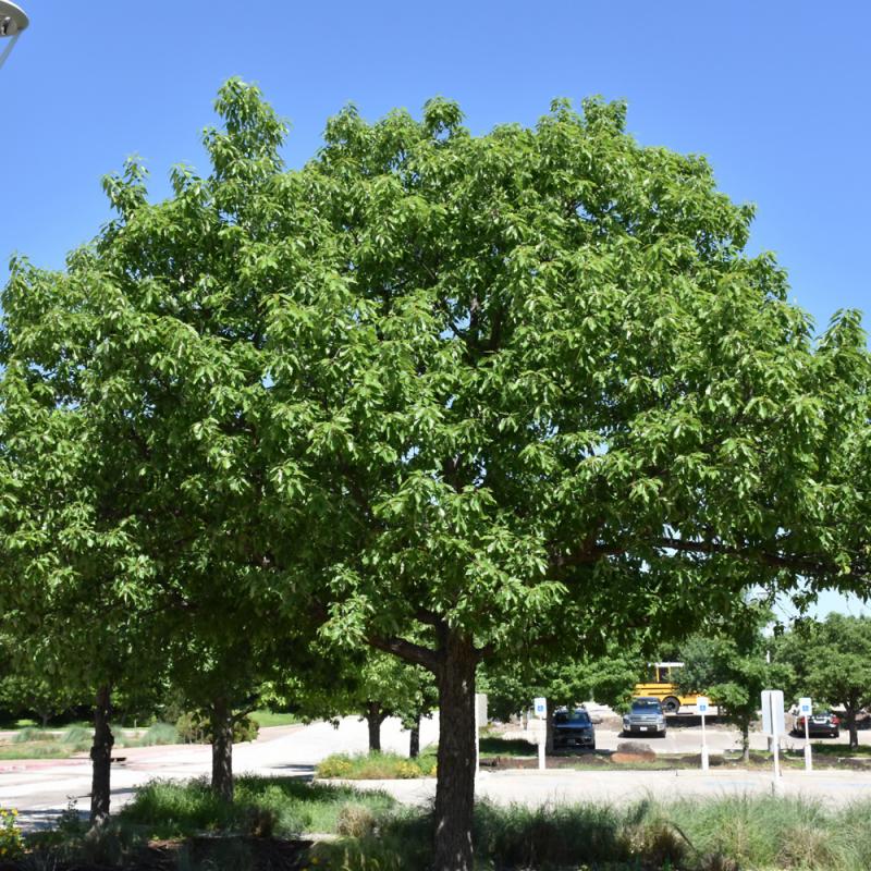 A stately large-growing shade tree with a rounded outline and wide-spreading habit of growth, distinguished branching habit; best for larger landscapes where it can spread its wings, very tough and adaptable but somewhat slow growing
