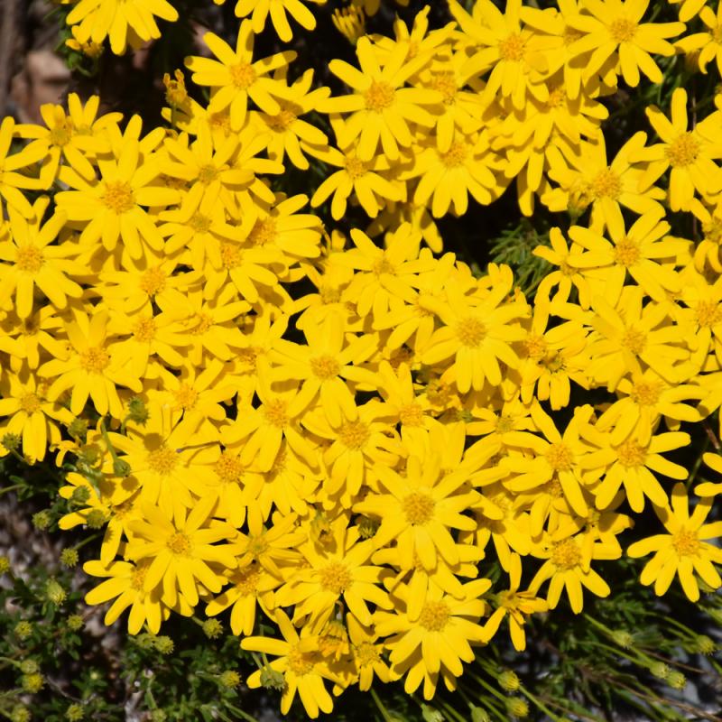 A small evergreen shrub with needle-like leaves, that is extremely heat and drought tolerant; covered with a profusion of golden yellow blooms from mid-spring to late summer; very showy in mass plantings, and good for erosion control on slopes.