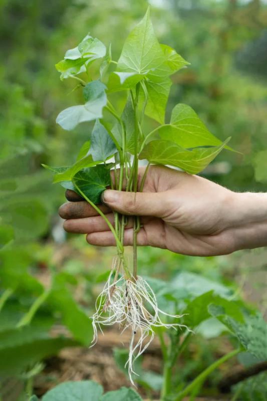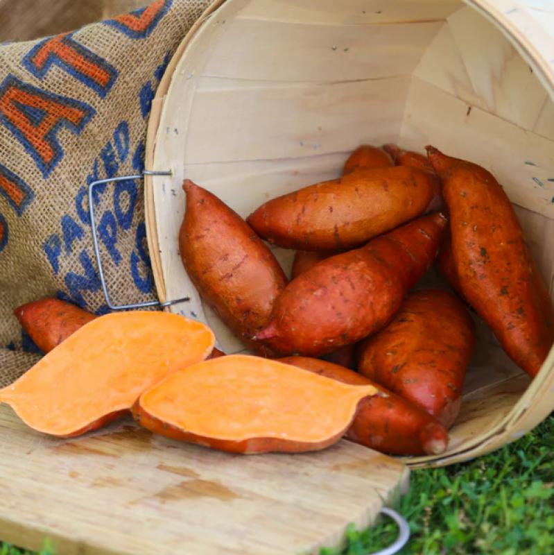 Beauregard is a fast-maturing sweet potato variety that is widely-adapted to southern and northern growing zones. This variety produces a high percentage of #1 grade sweet potatoes in just 90-100 days, making it a great option for gardeners with a shorter growing season. Beauregard produces large, elongated potatoes that have a red skin and orange flesh. They have a slightly sweet flavor that is comparable to that of a winter squash or pumpkin. The fine-grained flesh has a creamy consistency when cooked, making this a great sweet potato for baking and making sweet treats. Beauregard sweet potato plants produce long, trailing vines. As such, you'll want to give the plants plenty of room to roam. This variety performs best in an in-ground garden with adequate space, and would not be well-suited for container or raised bed gardens. Sweet potato plants prefer warmer soils, so we recommend waiting to plant when your soils are sufficiently warm in late spring. Beauregard sweet potato plants should be planted on a 10-12" plant spacing along the row. You can plant individual rows as close as 3', but we suggest a 4' row spacing for large vining varieties like Beauregard.