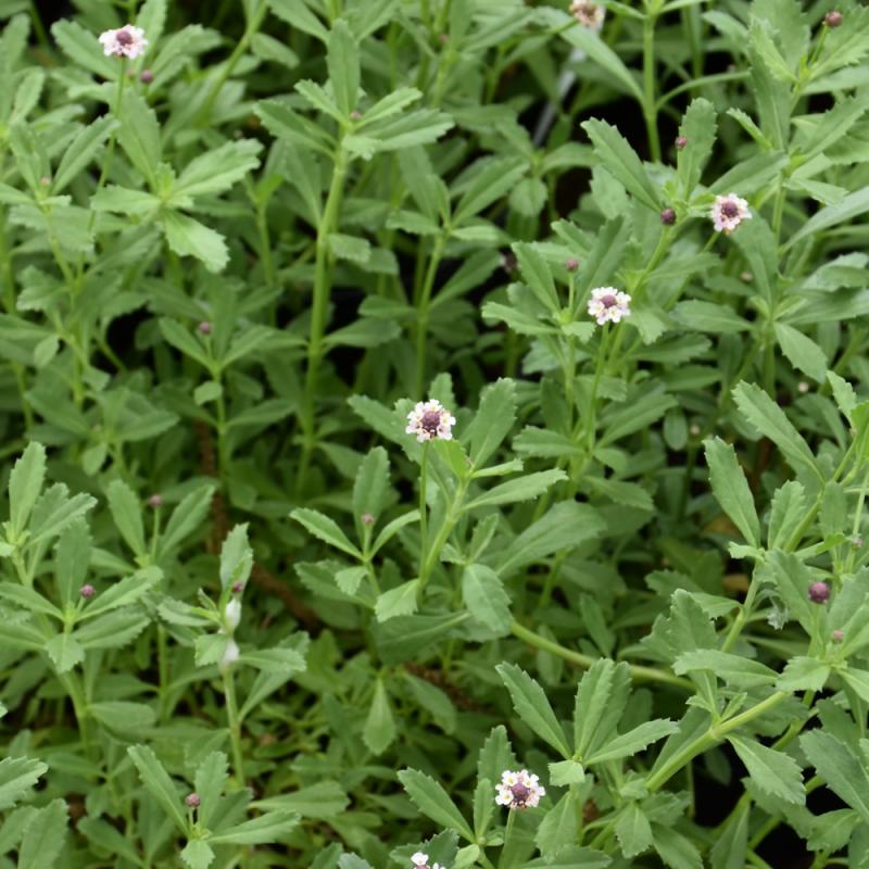 A semi-evergreen perennial groundcover with creeping stems that root from the nodes; produces upright flower stems with clusters of white blooms from spring to fall; foliage is dense, green, and toothed; a rapid grower that can form dense stands