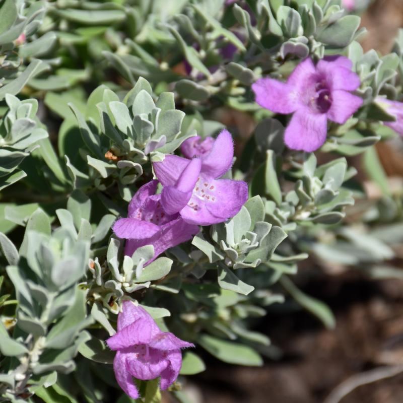 Renegade Texas Sage features showy clusters of purple flowers with pink overtones at the ends of the branches from mid summer to early fall. It has attractive grayish green foliage with hints of silver. The fuzzy oval leaves are highly ornamental and remain grayish green throughout the winter. The smooth gray bark adds an interesting dimension to the landscape. It is a good choice for attracting birds, bees and butterflies to your yard, but is not particularly attractive to deer who tend to leave it alone in favor of tastier treats